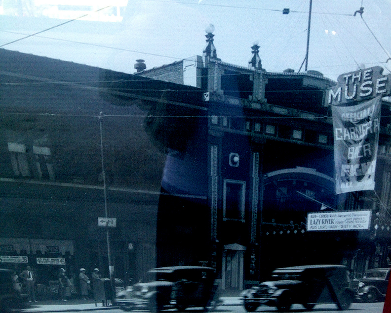 ***Addendum of August 30, 2021. My friend GeorgeAnne Catherine Prescott shared these perfect clues from the past: “I was in negotiation to buy The Muse when it burned down. My idea was to have a music venue, for original acts in any genre and I did want to live there. Upstairs in the projection room were reels going back decades (not the porn). Two reels I remember seeing were Gone With the Wind and Mary Poppins, but there were hundreds of them. I wish I would have taken pictures of the inside– especially of the projection room with its spacious apartment and balcony deck (above the marquee). The sound system was all Electro-voice and in full working order. Since the screen and projectors were all intact, I had hoped to thread the legal needles to have some movie nights as well. I was heartbroken at the loss.”
