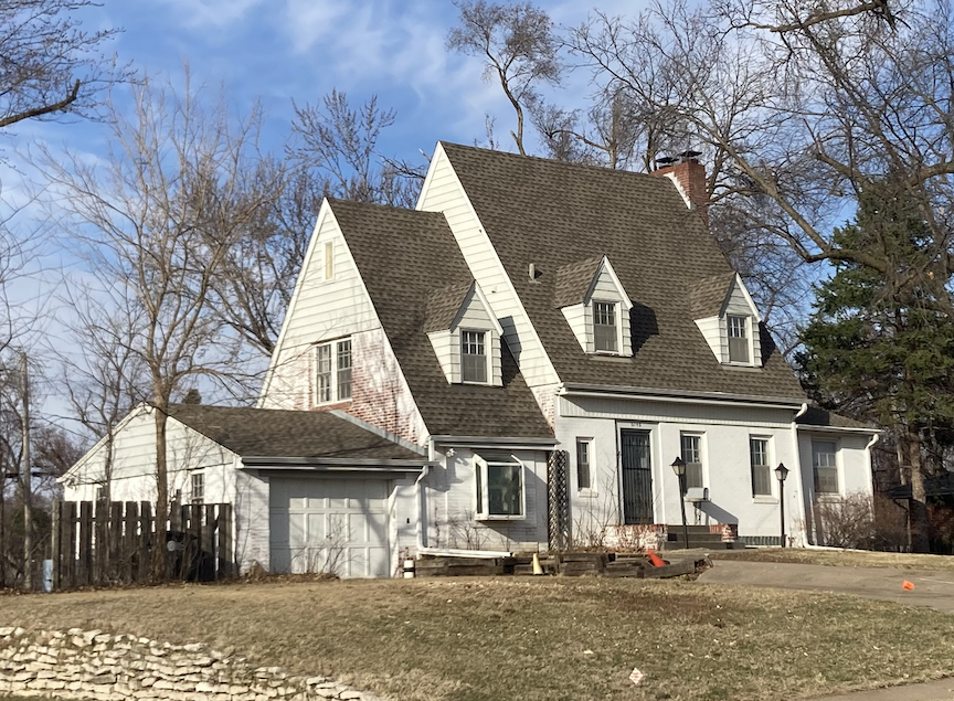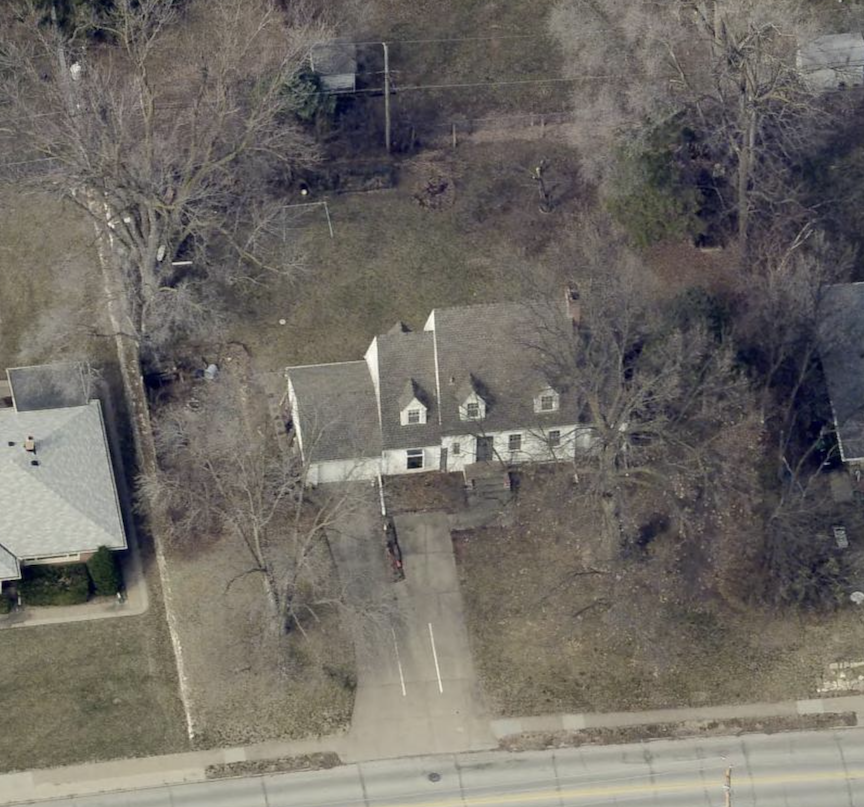 Even the aerial suggests a dolls’ house. Eastern elevation of 830 North 89thCircle. A study of the current home’s rooftop will show a menagerie of dreamy shapes, and curious connecting seams, any of which might be concealing the original home. I love to ponder this. Aerial photographs from the Douglas County/Omaha NE GIS Department website.
