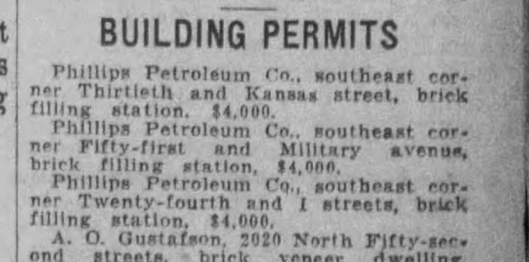 June 1929. Omaha Evening Bee News. It looks like three Phillips Petroleum gas stations were being constructed.