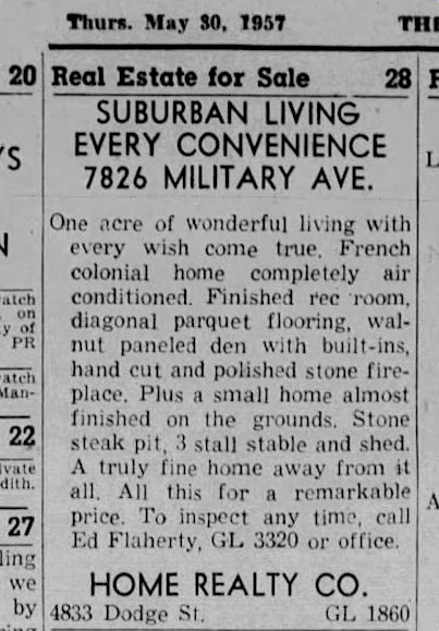 7826 Military Avenue has been sold and resold and a number of times since. The history of one of the owners is within my recent investigation: Mysteries of Omaha: 1503 Park Wild Avenue.