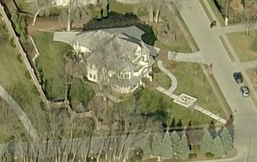 At the time of the 2020 aerial, the home is seen in pink and purple.