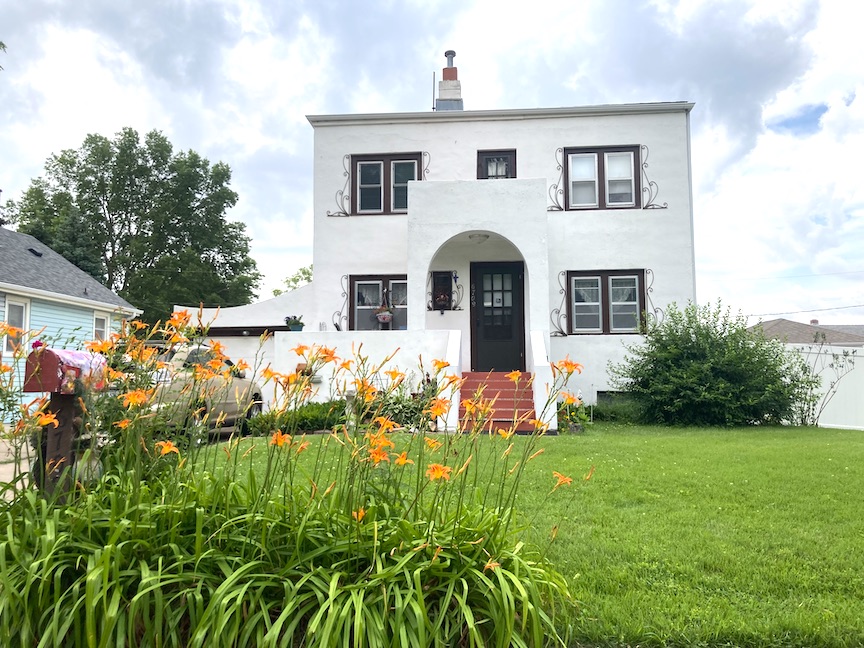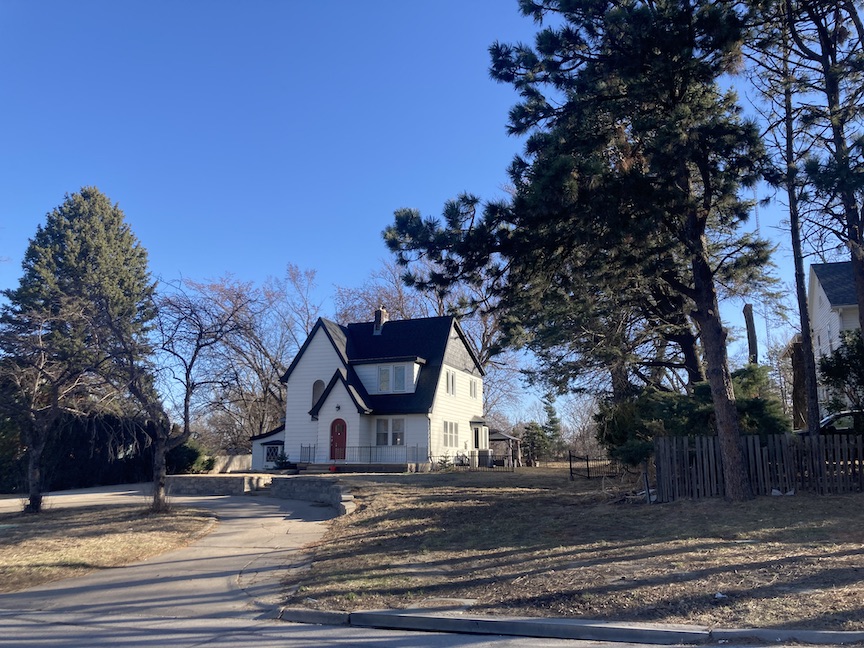Any child of Benson acquainted with the Keystone neighborhood recognized this striking dollhouse landmark. It was located immediately west of Mount Hope Cemetery. In addition to the small dollhouse, which I now realize was a gas station, this charming Tudor-style residence on Military Avenue was my initial encounter with the hope of witnessing an authentic miniature house. Throughout my years of passing this residence, I have never encountered a human, nor have I ever approached it. She didn’t used to have a circular drive or the hardscaping off the drive or up to the porch, which served to create a very long sweep of front lawn and a dramatic high rise view of the dollhouse. It was a puzzle. How did this house all fit together? Due to its distance from the road and the absence of nearby structures, these conditions, as previously described, permitted me to indulge in my dollhouse dreams freely without obstruction. This home is my Number One standout from childhood, among many beloveds.