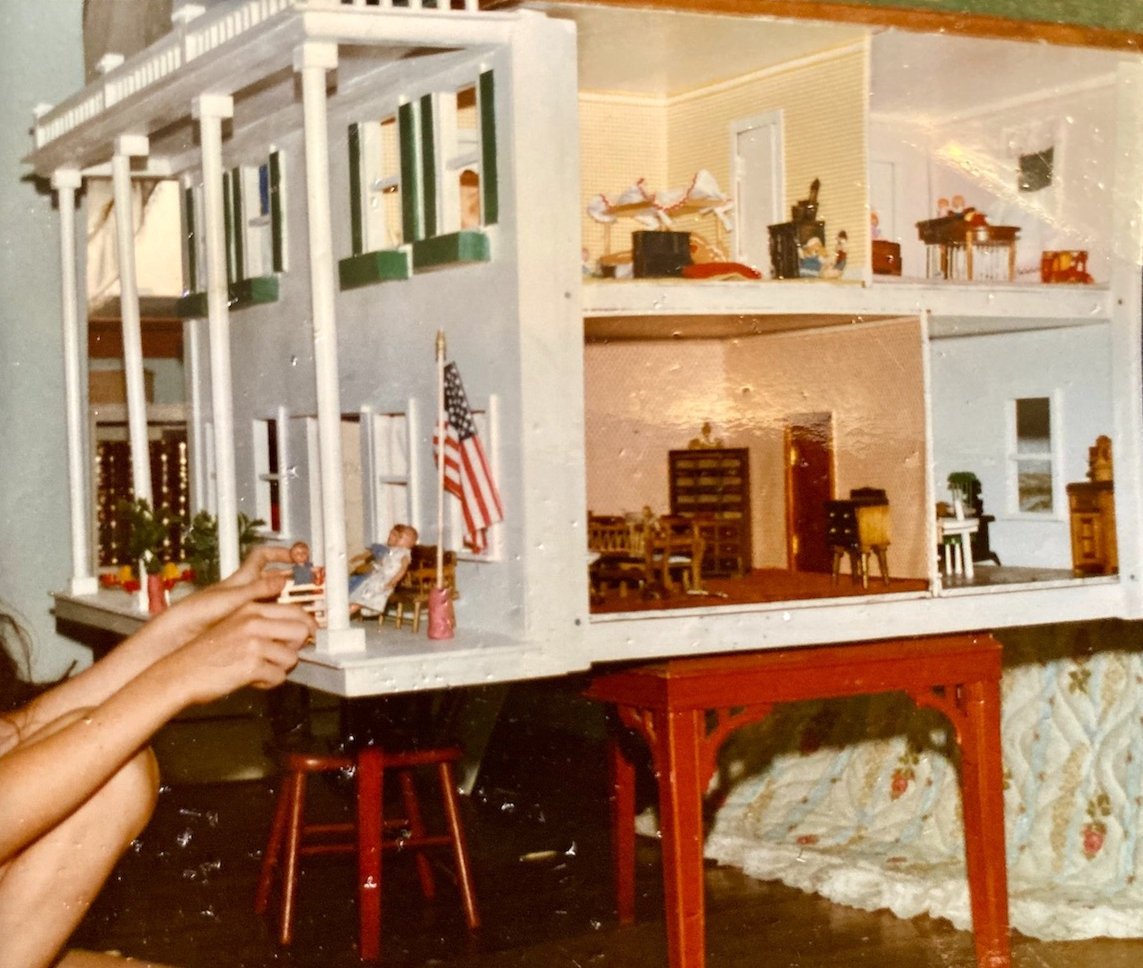 Here I am with my dollhouse in sweeter times.