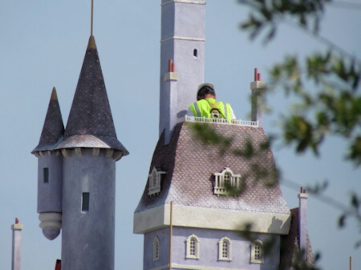 Disney worker fixing a castle.